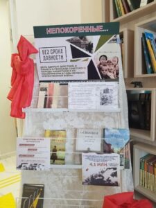 В преддверии 19 апреля — Дня памяти жертв геноцида советского народа, совершенного нацистами и их пособниками в годы Великой Отечественной войны, в Хатырыкской сельской модельной библиотеке им. М.А.Охлопковой Республики Саха (Якутия) открылась книжная выставка: “НЕПОКОРЕННЫЕ”: Без срока давности, посвящённая памяти жертв геноцида.