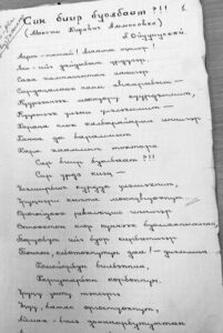1919 с. аатырбыт «Син биир буолбаат?» диэн Максим Аммосовка анаммыт хоһоонун суруйбута.