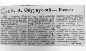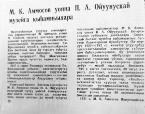 Бүгүн эһиги болҕомтоҕутугар биһиги библиотекабыт фондатыгар харалла сытар элбэх ахсааннаах паапкалартан Былатыан Ойуунускай Махсыымныын доҕордоһууларын туһунан Мария Охлопкова, Евгения Дьяконова муспут баай матырыйаалыттан билиһиннэрэбит.